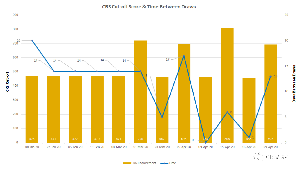 自2020年3月18日起,加拿大移民局举行了7次快速通道抽签,在这7次邀请了快速通道省提名和加拿大经验类移民项目的候选人。