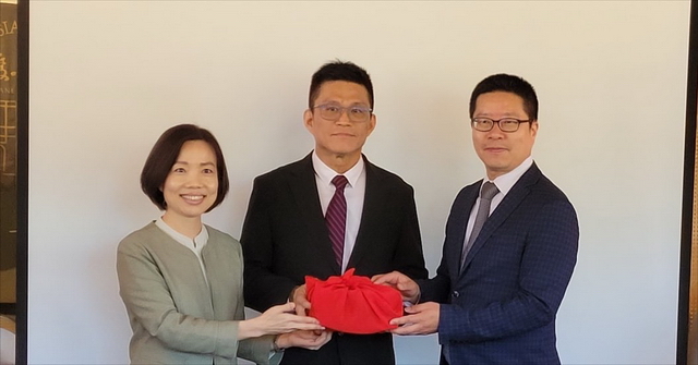 会长徐弘益(中)在主任蓝柏青的见证下就职