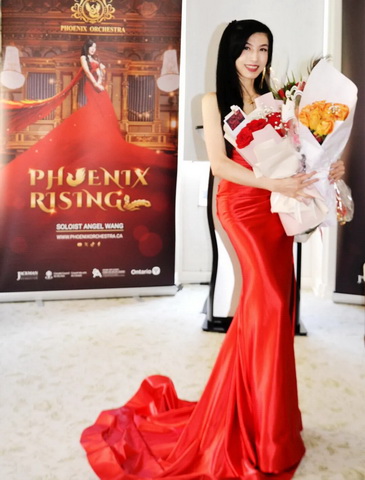 据Angel介绍,加拿大凤凰交响乐团多年以来致力于演奏西方古典音乐和中国古典音乐,运用各种传统和现代乐器,旨在加深多伦多乃至整个加拿大社会对中西音乐文化艺术的理解。凤凰交响乐团今年以来曾多次在多伦多各大剧院成功举行多场盛大轰动演出,全场爆满。尤其于2019年受邀参加了著名的“相约北京国际艺术节”,当时是唯一代表北美洲参加此项活动的加拿大乐团,这对乐团来说意义非凡。Angel Wang 致力于演出和推广加拿大作曲家的作品,并委托加拿大著名华裔作曲家 Alice Ping Yee Ho 创作了一部小提琴独奏作品,《凤凰飞舞》于 2023 年12月在多伦多科尔纳音乐厅 (Koerner Hall) 进行了全球首演取得巨大成功。