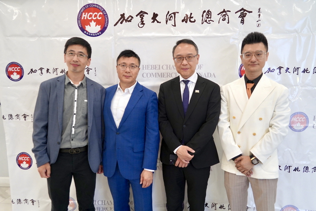 万锦法约克区 区议员 何胡景 、烈治文山市市议员 崔冰辉 、中国贸促会驻加拿大代表处总代表 徐强、加拿大吉林总商会会长杨光、加拿大江苏总商会副会长 Susan Wang。
