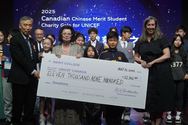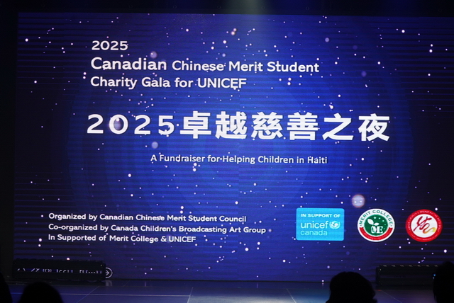 5月31日晚,由Merit College (卓越高中)与加拿大卓越学生会联合主办的“2025卓越之夜”慈善晚会(2025 Canadian Chinese Merit Student Charity Gala for UNICEF)在万锦市《新动力演播厅》隆重举行。这场以“援助海地地震受灾儿童”为主题的公益盛会,通过义演、慈善拍卖与现场捐赠,最终筹集善款17,900加元(其中6000元捐赠至多伦多当地教育及医疗机构)。