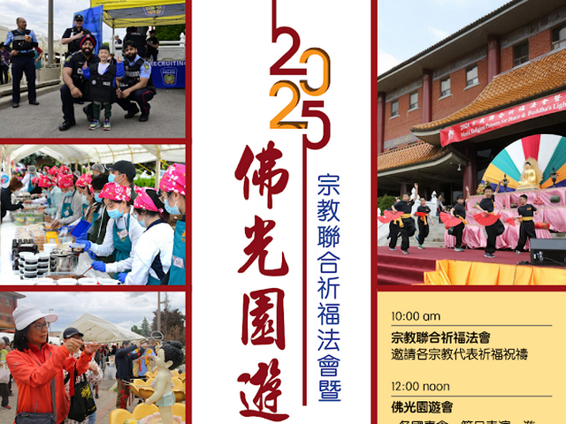 无论您是来放松心情、品嚐美食、亲子同乐或寻求灵性滋养,「2025多伦多宗教联合祈福法会暨佛光园游会」都将是一场不容错过的全方位飨宴。