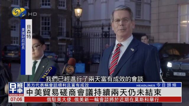 美国财长贝森特会议离场後,向媒体表示,这两天的谈判富有成效,但仍有细节问题需要中美两国官员後续磋商。