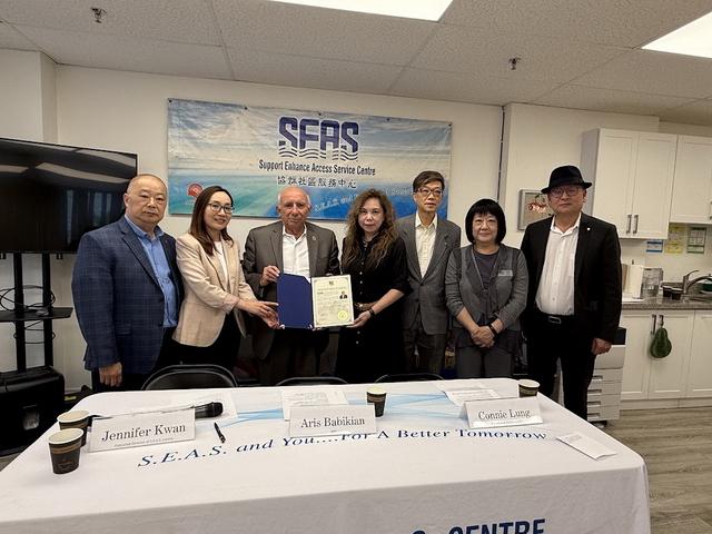 士嘉堡-爱静阁选区省议员白必勤 (Aris Babikian) 莅临协群社区服务中心 (S.E.A.S. Centre),视察其重要设施翻新工程的成果。此项工程得以顺利完成,有赖安省省政府机构 – 安省延龄草基金会 (Ontario Trillium Foundation, OTF) 于2024年批出的一笔 $38,700元的「资本补助金」(Capital Grant)。这些升级显著地增强了该中心为其服务对象 – 个人及家庭 – 所提供的私隐度、无障碍设施及整体的服务体验。