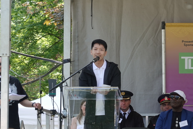 香港经贸处署理处长杨江锋于开幕礼上致辞,指香港经贸处荣幸能继续支持举办龙舟节。他说:「香港约在40年前把这项水上运动引入加拿大。龙舟竞渡象征香港与加拿大两地紧密、长久的联系。」