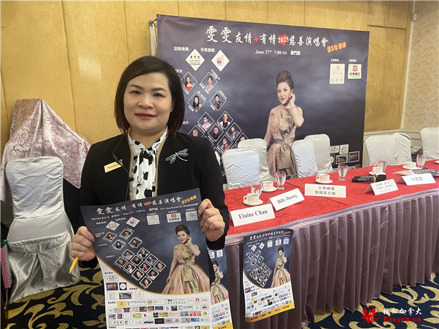 备受社区关注的「雯雯友情 + 有情慈善演唱会」将於6月27日 (星期五)晚上七时假《豪门宴》隆重举行。主办方於6月24日召开新闻发布会宣布是次活动旨在为耆晖会(Carefirst)於烈治文山市兴建Campus of Care长者综合护理园区筹募经费,反应热烈,门票几近售罄,预料将吸引约600位宾客出席共襄善举估计可筹得$30000善款。