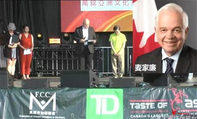 颁发奖牌给亚洲文化美食节主席、加拿大万锦与约克地区华人联合总会主席吴建忠医生(Dr. Ken Ng)