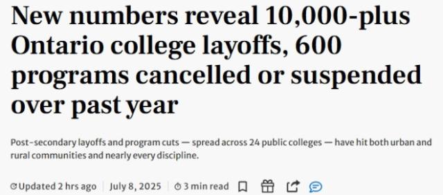 - https://www.thestar.com/news/ontario/new-numbers-reveal-10-000-plus-ontario-college-layoffs-600-programs-cancelled-or-suspended-over/article_4f1c1f0d-641d-434d-8f9d-a76256a60c54.html
