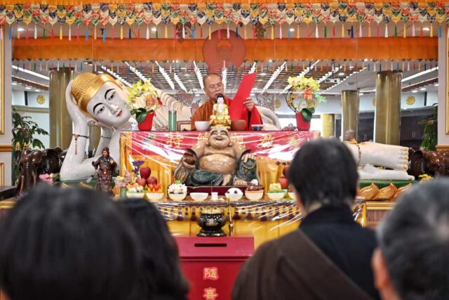 法会圆满之日,天降甘霖。原本晴朗的天空在礼拜声中缓缓洒下雨丝,宛如感应天地,印证三宝慈悲护念。达义大和尚在大雄宝殿中为大众开示,深入浅出讲解《华严经》与《妙法莲华经》的智慧,启发信众如何于日常中实践佛法,转烦恼为菩提。