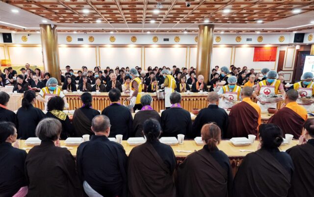 法会最后,大和尚在五观堂亲自带领四众弟子过堂供斋,并诚挚邀请大众前往加国五台山护持道场,种福田、结善缘,共植菩提因,共结清净缘。
