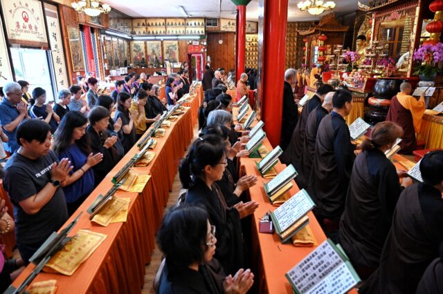 雨后初晴,天清气朗令人感觉很舒服,佛号声中,信众同声赞颂菩萨的功德,祈愿佛日增辉、正法久住,愿众生皆能皈依正法,得清净道心,共证圆满佛果。