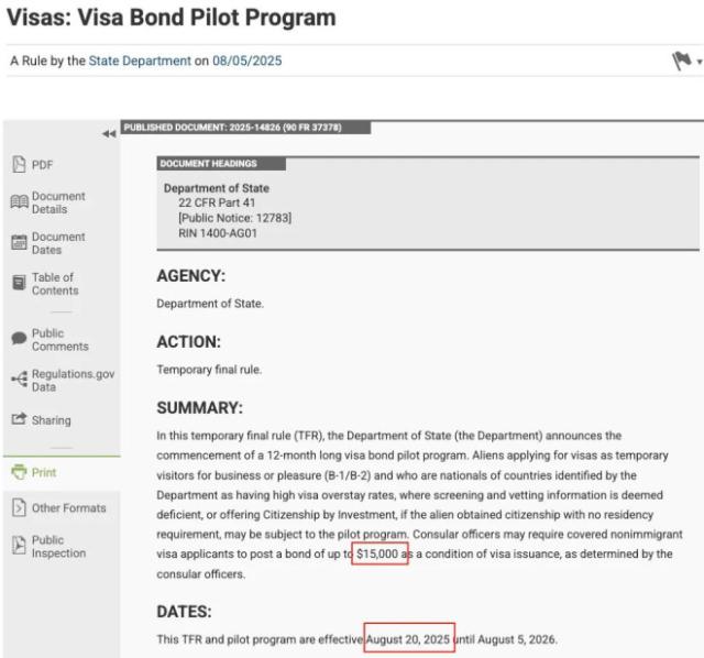 想去美国旅游?或需缴$15,000保证金!新规8月20日起实施