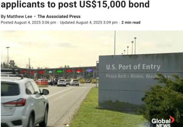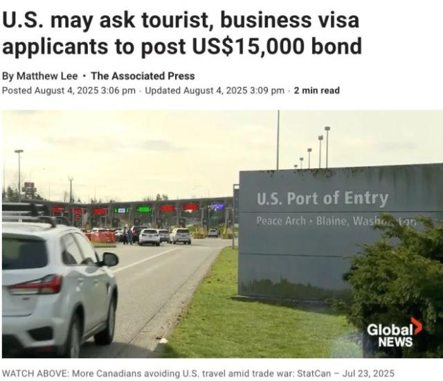 8月4日,美国发出一则重要通告,宣布进行一项试点,要求商务和旅游签证申请人缴纳最高15,000美元(约合20,600加元)的保证金才能入境美国。
