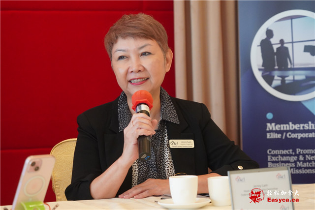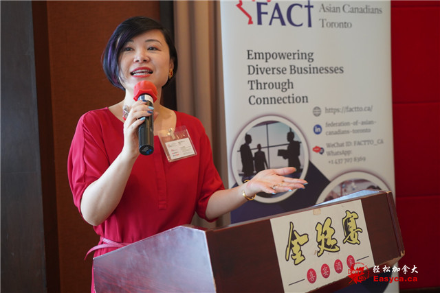 会员事务委员会负责人林菁薇 (Jenny Lam )介绍了 FACT企业会员(500 加元)与高级会员(1,500加元)计划