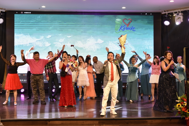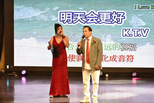 下半场的节目依旧精彩纷呈。舞蹈歌曲《太阳姑娘》热情洋溢;陈滚先生独唱《故乡的云》,情感真挚;June Feng与曾文昌携手带来《玫瑰玫瑰我爱你》,轻快浪漫;Rocky先生献唱《黄昏》,温柔动人。Liza小姐与Wing小姐合唱粤剧小曲《帝女花之香夭》,婉转凄美,余音绕梁。