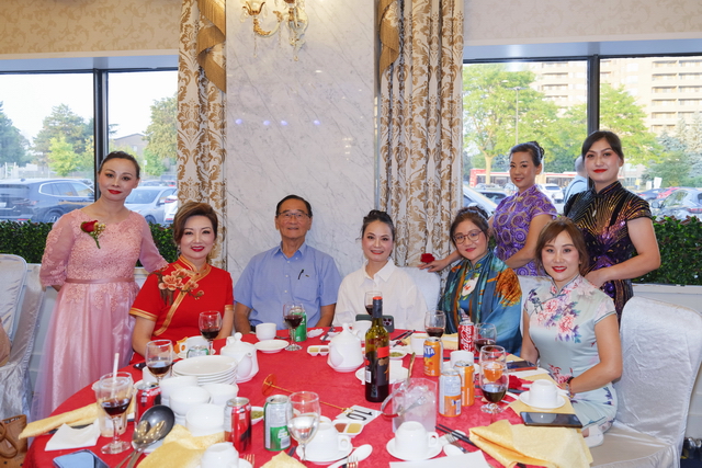 多伦多广海联合会109周年庆典在士嘉堡豪门宴隆重举行,嘉宾与礼仪团队合影留念