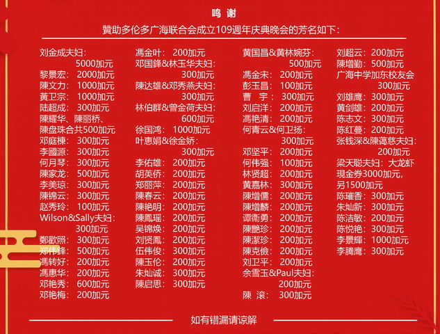 无论是对广海社团的成员,还是对整个华人社区而言,多伦多广海联合会109周年庆典都是一份骄傲与传承。这不仅是一场聚会,更是一种精神象征,凝聚着乡情、友情与团结的力量。