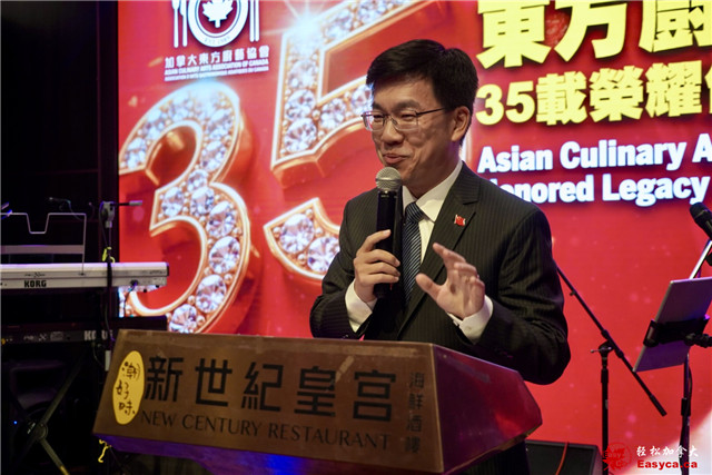 加拿大东方厨艺协会会长 黄正杰首先致词表示,夹加拿大东方厨艺协会成立三十五周年之际,我谨代表协会向所有支持中华饮食文化发展的同仁以及朋友们,致以最挚诚的感谢与敬意!