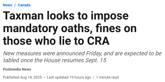 - https://torontosun.com/news/national/taxman-looks-to-impose-mandatory-oaths-fines-on-those-who-lie-to-cra?itm_source=news