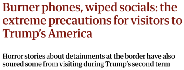 这种风险让许多外国人重新考虑甚至直接放弃赴美行程。