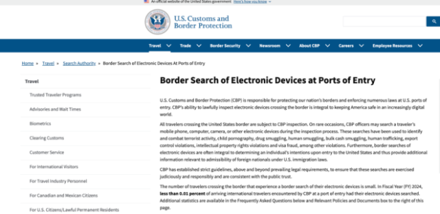 针对外界批评,美国海关与边境保护局(CBP)回应称,电子设备搜查的目的在于发现违禁品、恐怖主义相关信息,以及核实访客入境资格,而非基于政治立场。