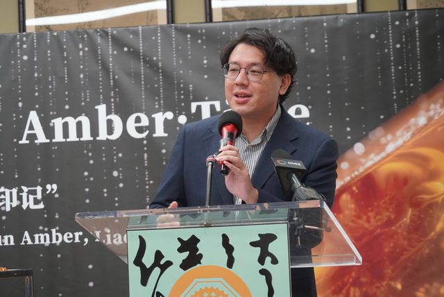 据抚顺文旅局宣传部主任宋衍军介绍,中国辽宁抚顺,是世界闻名的琥珀重要产区,更是中国昆虫琥珀的唯一故乡。抚顺琥珀雕刻艺术则承载着百年历史,凝结着匠人心血与智慧。 “琥珀雕刻”现已被正式列入国家级非物质文化遗产名录。琥珀雕刻这一传统工艺,既保留了中华传统文化的深厚底蕴,又展现了中国工艺美术的独特创造力。它集工艺价值、审美价值、收藏价值于一体,是中华文化宝库中一颗璀璨夺目的明珠。最后宋衍军预祝琥珀展览圆满成功。