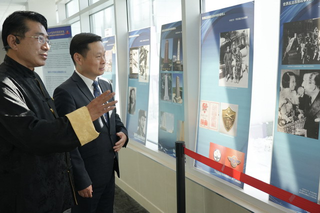 首映式结束后,程副总领事与来宾们一起参观了同时由加拿大同京同乡会举办的《海外华人华侨参与抗战历史图片展》,现场展出了近百幅北美华人华侨直接参加抗战与支持中国抗战募捐等专题历史珍贵文献。