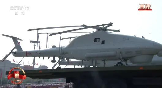 空中无人作战方队接受检阅。受阅的新型察打一体无人机、无人僚机、舰载无人直升机,可隐蔽突击、广域覆盖、自主协同。