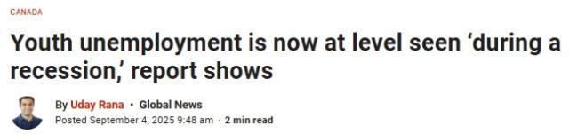 与此同时,加拿大的青年失业危机尤其严重,已达通常只有在“经济衰退”时期才会出现的程度。