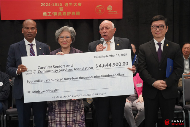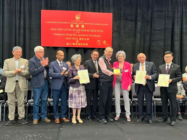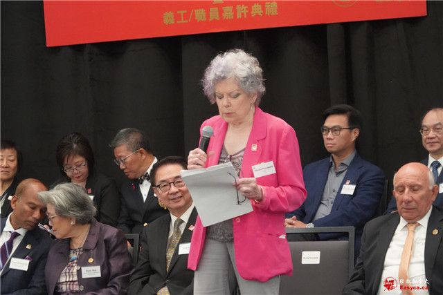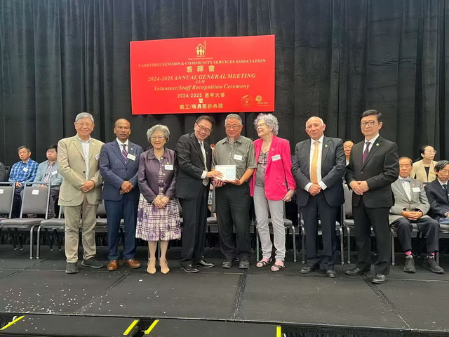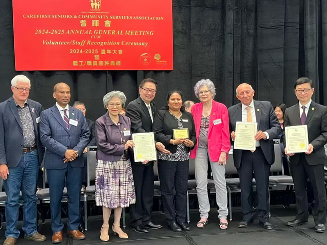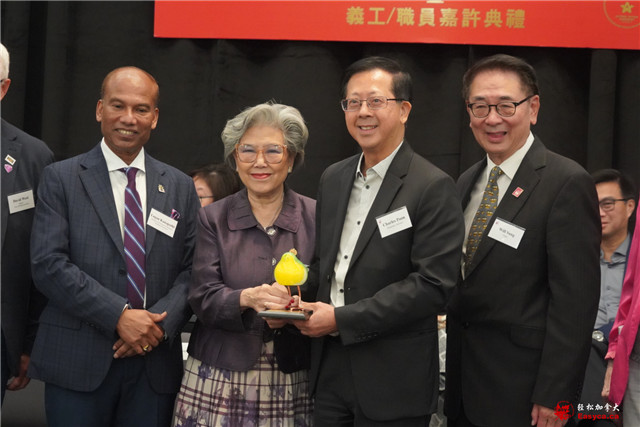耆晖会董事局主席Sheila Neysmith博士致词时表示自2013年加入耆晖会董事会以来已服务12年,见证机构稳步成长,并率先推行PACE一体化护理模式。今年8月,烈治文山9893 Leslie Street的「社区及长期院舍服务园」正式动土,设有124床长期护理院、医疗中心及社区服务枢纽,开创创新里程碑。耆晖会自1976年由送餐服务起步,至今已服务近1.8万名长者及社区人士。当天特别表扬53位长期服务员工及义工,感谢大家多年付出与支持,让耆晖会使命得以实现。