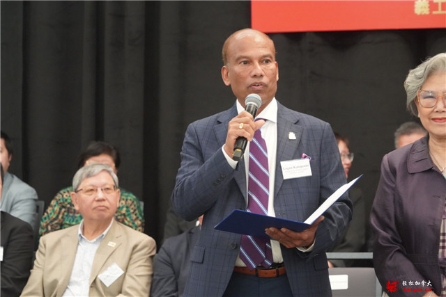 安省省议员白必勤、罗庚、彭锦威分别致词及赠贺信
