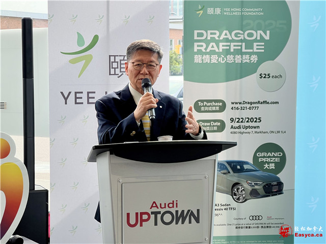 颐康基金会今日(9月22日)在Audi Uptown举行了2025颐康「龙情爱心」慈善奖券抽奖仪式,奖券号码02731的持有人成幸运儿,赢得大奖全新奥迪A3豪华轿车一辆。万锦市第3区市议员Reid McAlpine亦有亲临现场,一同揭晓大奖得主。