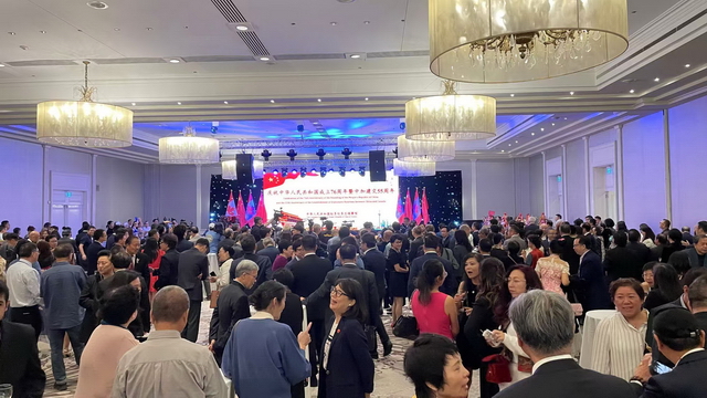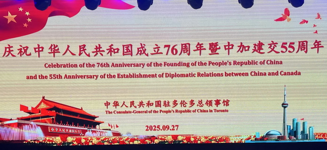 2025年9月27日,中国驻多伦多总领馆在多伦多泛太平洋酒店隆重举办招待会,庆祝中华人民共和国成立76周年暨中加建交55周年。来自加拿大三级政府代表、各国驻多伦多领团、工商学界人士、华侨华人代表以及中资机构、学生学者共500余人出席,现场气氛热烈。