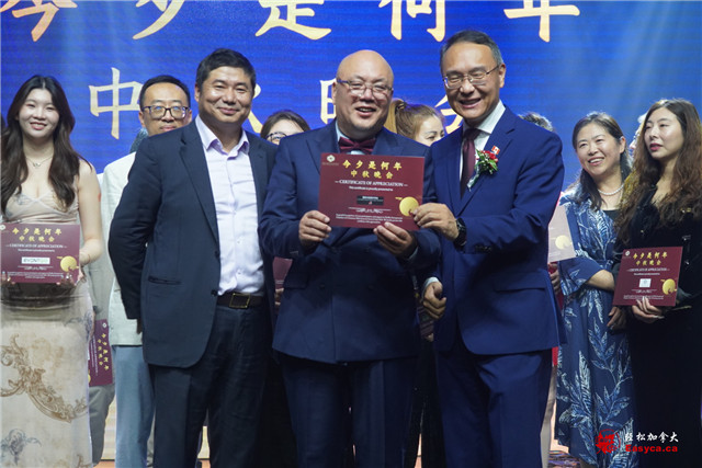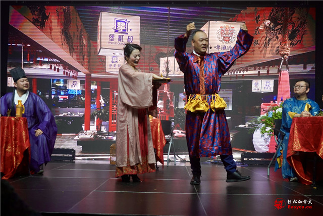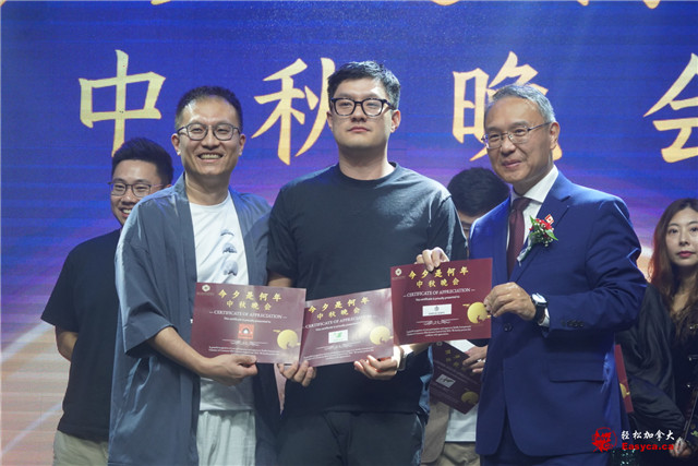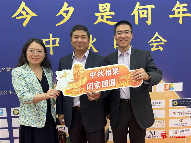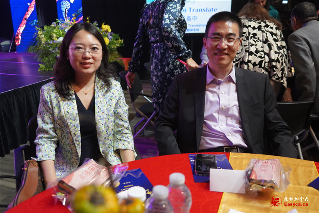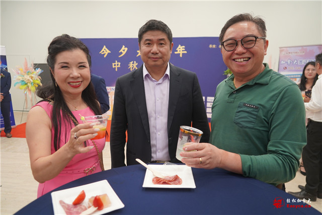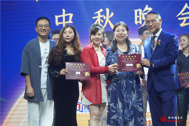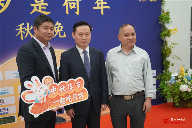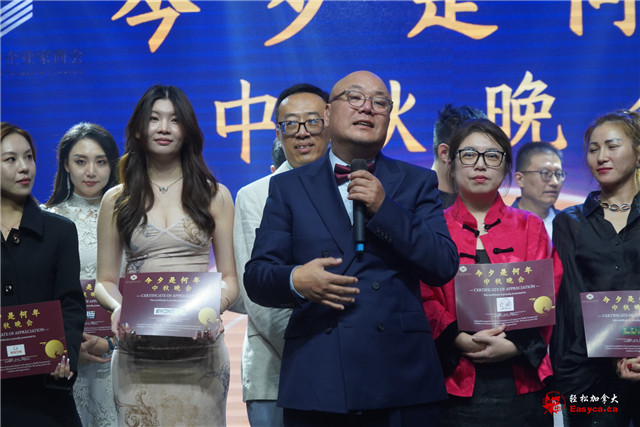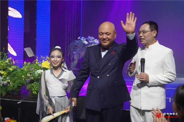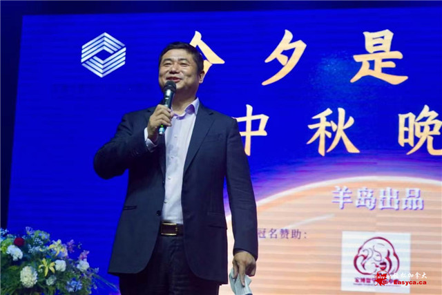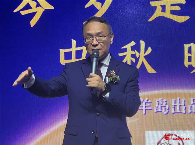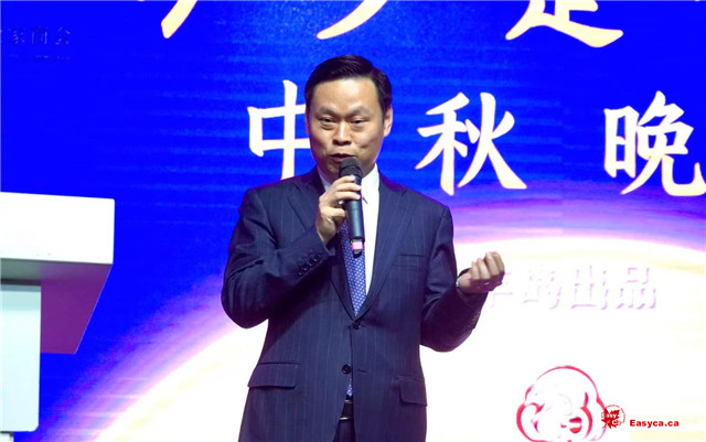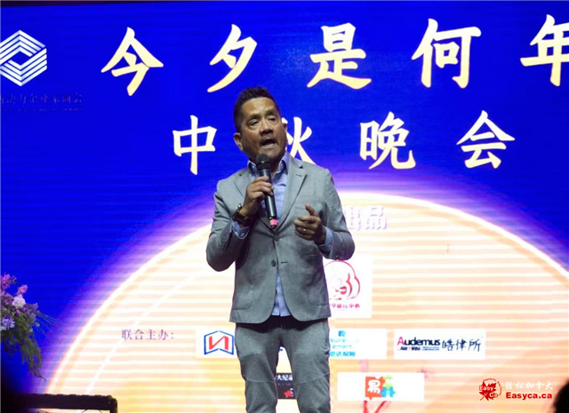商会发起人 James Wang(壬志军)致词表示,感谢这么多企业家来参加我们商会的中秋晚会。俗话说“众人拾柴火焰高”,今天这场活动正是聚合了各方力量。从导演,到各个组织的演员:多伦多话剧团、朗诵艺术团、易中文的孩子们、维也纳合唱团、联合高校合唱团,以及林曦丹老师和叶岚老师的倾情演出;到各个企业对晚会的支持与赞助包括:老娘水煎包的酥饼、嘟嘟快送的零食、FoodsUp 的料、Flower Time 的全场布置、汉元印刷的背景板和打印材料、Leslie 提供的美食饮品等,所有这些让这场活动得以圆满举办。
