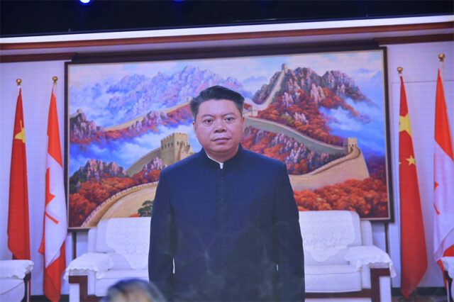 中国驻多伦多总领事馆代总领事程洪波在发言时首先向在场的嘉宾表示祝贺,他说:“我们欢聚在此,共同见证多伦多华联总会成立40周年,庆祝中华人民共和国成立76周年,纪念中加建交55周年,并共度中华民族的传统佳节——中秋节。在这四喜盈门的美好时刻,我谨代表中国驻多伦多总领馆,向华联总会致以热烈祝贺,并向在座的各位侨胞和各界朋友,致以诚挚的节日问候!