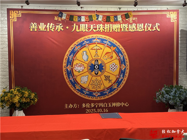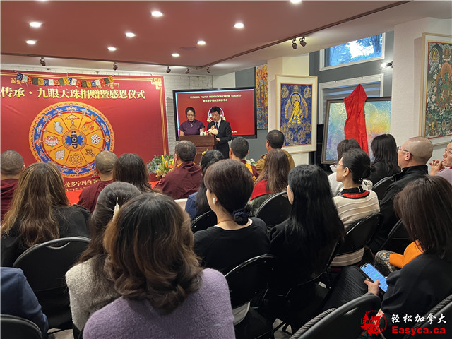 2025年10月16日下午18时,由多伦多宁玛白玉禅修中心主办的“九眼天珠捐赠暨感恩仪式”于多伦多左晋画廊庄严举行。活动汇聚了当地善信、文化界人士与艺术爱好者,共同见证了一场融合信仰、艺术与慈悲的殊胜盛会。