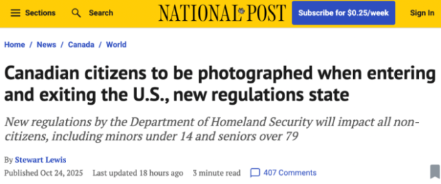 此外,对于在美停留超过30天的加拿大人,包括“候鸟族”长者,现行规定已要求指纹采集和登记。新规的实施意味着所有加拿大旅客未来都将被纳入生物识别系统。