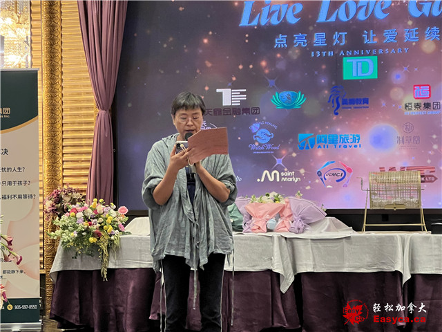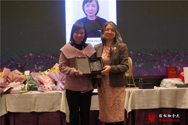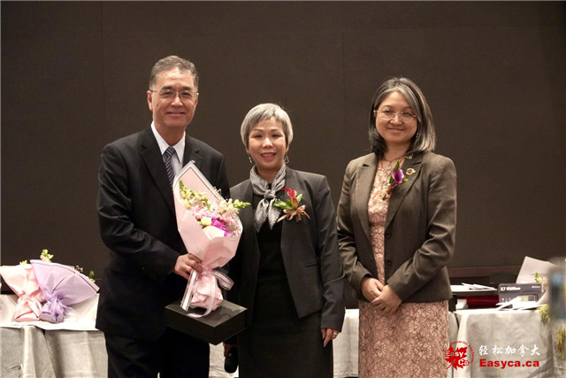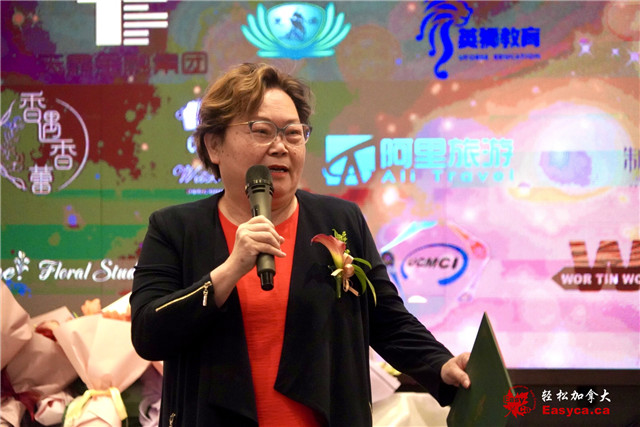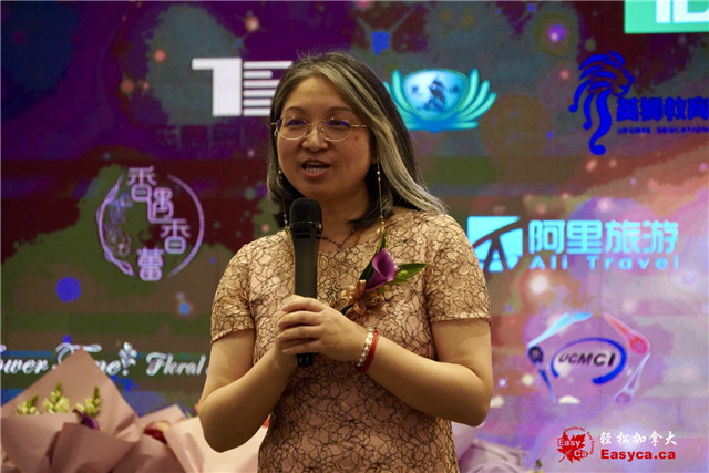 加拿大国会议员陈圣源的代表杨龙寳娟致词并赠贺函
