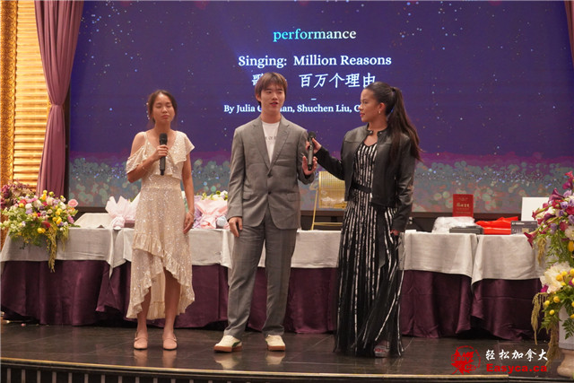 整场晚宴节目精彩纷呈,掌声与感动此起彼伏。2025年全国拉丁舞冠军Julia Guzman的热情演出,更让现场沉醉于青春与梦想的律动。青少年表演团队演唱《Million Reasons》,真挚的歌声传递希望与勇气,而Mr. David Zhong的《世界赠与我的》更让全场沉浸在感动中。晚会还迎来特别嘉宾烈治文山市市议员崔冰辉,即兴为现场献唱京剧,为活动增添更多温情与惊喜。