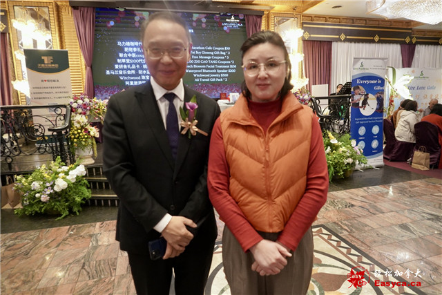 现场宾朋满座,星光熠熠。晚宴由郭然与Julia Guzman小姐联合主持。这次活动得到加拿大三级政府的大力支持,总理卡尼(Mark Carney)发来贺信,国会议员天河山、陈圣源、安省省长福特、安省省议员罗庚、白必勤、万锦市市长薛家平纷纷发来贺电。加拿大国会议员陈圣源的代表杨龙寳娟(Judy Yeung)、安省省议员白必勤(Aris Babikian)、Rob Cerijancr、万锦市区议员何胡景(Alan Ho)以及列治文山市议员崔冰辉(Simon Cui)亲临现场,为公益盛典增添光彩,也传递出社会各界对特殊儿童与家庭的深切关怀。