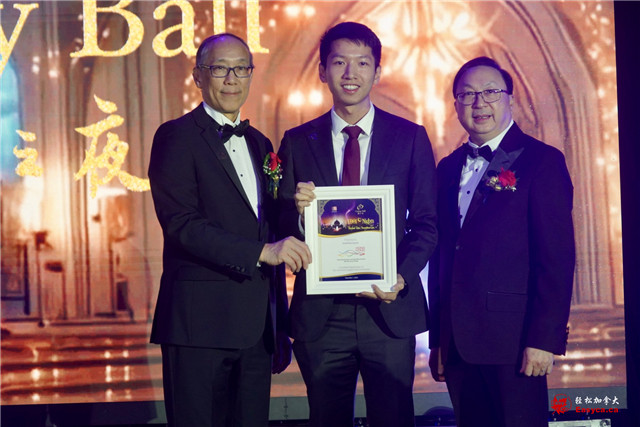 孟尝会主席关永添颁奖牌给今届「孟尝之夜」共同主席郑伟东与马逸德