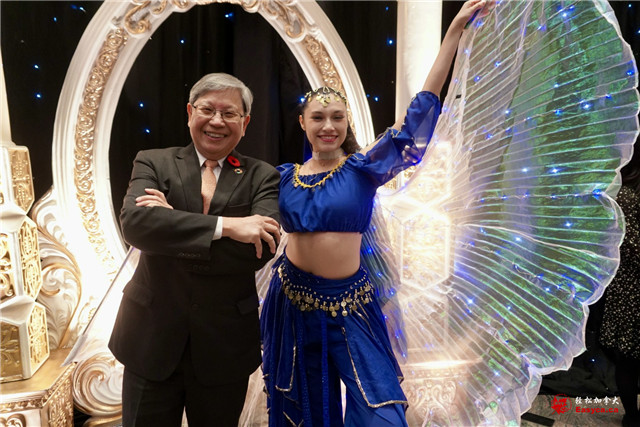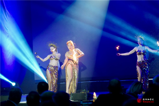 为配合主题,筹委会精心策划,竭力为宾客缔造一场精彩难忘的晚宴。在会场精心布置的大型场景布置,让嘉宾感受瑰丽梦幻的氛围,纷纷拍照留倩影。晚宴节目十分丰富,除了His Majesty’s Canadian Ship York Band (HMSC)军乐队以悠扬乐声引领主礼嘉宾进场外,更有多个表演环节,包括︰NorthFIRECircus带来震撼夺目的火舞、Hips Don’t Lie舞团呈献充满魅力的肚皮舞,更邀到多伦多著名乐队Michael Vieira Band献唱悦耳动听的经典金曲,令宾客目不暇给,沉醉于节奏与动感之中。