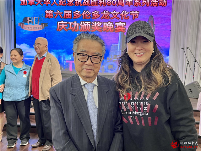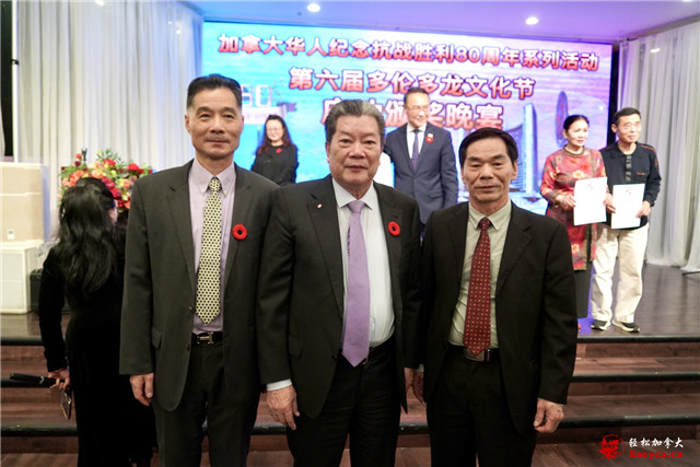现场的人们争相在舞台背景墙前合影,留下这个难忘的夜晚,庆功答谢晚宴在温馨与掌声中圆满落幕。嘉宾们纷纷表示,纪念活动不仅让海外华人更加深刻地理解中华民族的抗战历史,也让“龙的精神”在加国的天空继续飞扬。