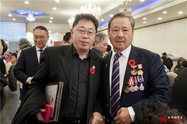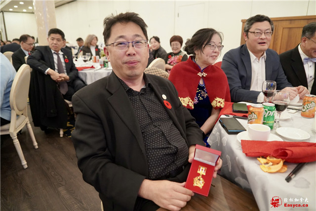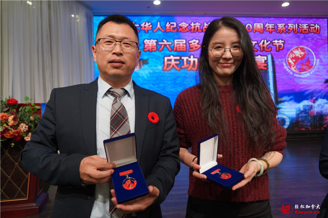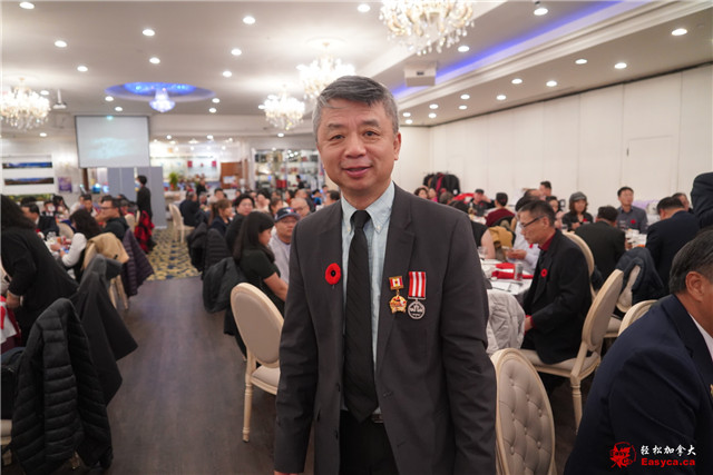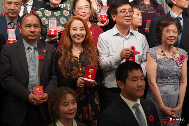 活动组委会主席、加拿大华人文化艺术团体联合会主席张俭特别佩戴了象征荣誉与奉献精神的老兵协会勋章,以表达对“纪念抗战胜利80周年”系列活动的重视与敬意。他在致辞中充满激情地回顾了活动的筹办和实施历程。