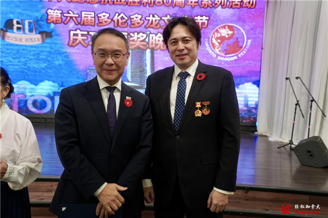 他强调,龙文化节已成为加拿大传播中华文化的重要品牌。“龙的精神”不仅象征着中华文化的延续,也成为加拿大多元文化交流的重要纽带。他特别感谢所有赞助商、组委会成员及义工的辛勤付出,并指出,两大活动的圆满成功,正体现了“团结、奉献与和平”的抗战精神。