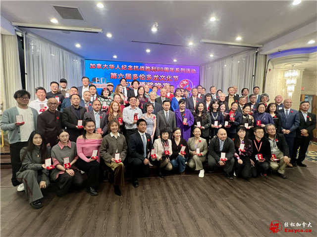 2025年11月5日晚,由第六届多伦多龙文化节暨纪念世界反法西斯战争和中国人民抗日战争胜利80周年系列活动组委会主办的庆功及颁奖晚宴,在多伦多《豪门宴大酒楼》隆重举行。来自社会各界的300余位嘉宾齐聚一堂,共同见证这一意义深远的时刻。