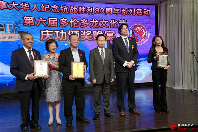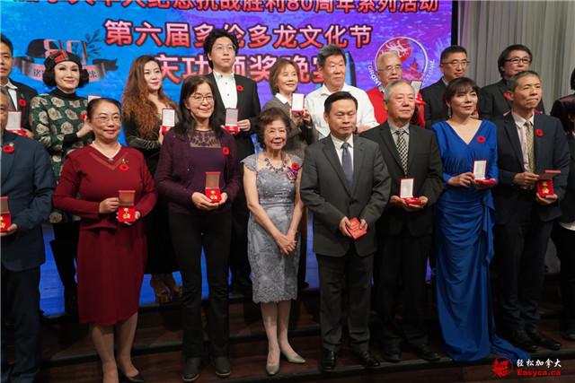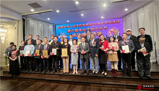 这一系列颁奖仪式不仅表达了主办方对支持者与参与者的感谢,也彰显了加华社区在传承历史记忆与弘扬中华文化方面的凝聚力与奉献精神。中国驻多伦多代总领事程洪波、萧美珍女士、张俭主席及张炜总导演等先后为获奖者颁发奖项并合影留念。