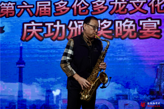 晚宴间穿插多场文艺表演,气氛热烈。萨克斯演奏《给我一个吻》、独唱《两地曲》和《中国,我爱你》等节目,将现场氛围推向高潮,展现了华人艺术家以音乐传递情感、以文化联结心灵的艺术魅力。