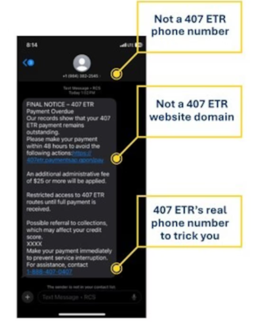 来源链接:https://www.cp24.com/local/toronto/2025/11/07/beware-407-etr-seeing-increasing-reports-of-phishing-scams/