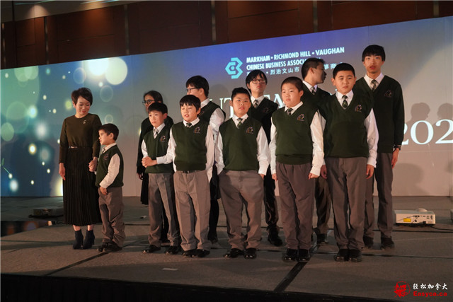 由 Aspiration Academy 学生领唱加拿大国歌、揭开晚宴序幕
